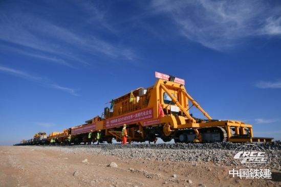 為攻克難題,項(xiàng)目團(tuán)隊(duì)創(chuàng)新采用“機(jī)械化集群作業(yè)+智能監(jiān)測(cè)”施工模式,投入70余臺(tái)(套)適配沙漠環(huán)境的專用施工設(shè)備,推行24小時(shí)雙班鋪軌循環(huán)作業(yè),成功創(chuàng)下單日最高4.225公里以及日均鋪軌3.5公里的沙漠鐵路施工紀(jì)錄。